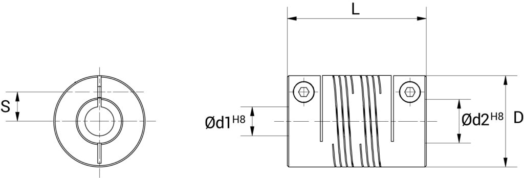 Giunti realizzati da un unico pezzo di materiale con spirale a due principi con sistema di fissaggio a morsetto. Idoneo per un’infinita gamma di applicazioni. Assenza di gioco, assenza di vibrazioni e manutenzioni. Ottima capacità di correggere errori di disallineamento ed elevata rigidità torsionale. Coppie elevate. Possono lavorare a temperature comprese tra -40°C e +140°C.