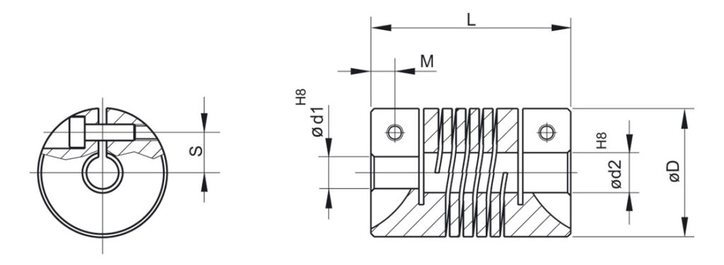 Giunti realizzati da un unico pezzo di materiale con sistema di fissaggio a morsetto. Idoneo per un’infinita gamma di applicazioni. Assenza di gioco, assenza di vibrazioni e manutenzioni. Ottima capacità di correggere errori di disallineamento ed elevata rigidità torsionale. Possono lavorare a temperature comprese tra -30°C e 150°C.