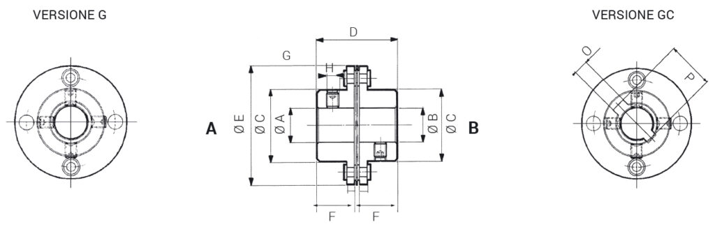 L’accoppiamento diretto dei due mozzi consente di avere un ingombro estremamente ridotto. È prevista la versione con grani e chiavette. Vengono utilizzati per l’accoppiamento di dinamo tachimetriche, encoder, motori, strumenti di misura e tutte quelle applicazioni dove sia indispensabile trasmettere un moto rotatorio omocinetico nei quattro quadranti e con assoluta rigidità torsionale anche quando l’accoppiamento degli alberi non si presenta perfettamente allineato.