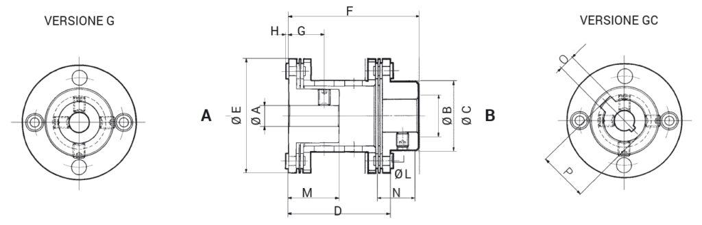 I doppi mozzi, uno interno ed uno esterno ridotto, consentono una grande accessibilità ai grani di fissaggio. È prevista la versione con grani e chiavette. Vengono utilizzati per l’accoppiamento di dinamo tachimetriche, encoder, motori, strumenti di misura e tutte quelle applicazioni dove sia indispensabile trasmettere un moto rotatorio omocinetico nei quattro quadranti e con assoluta rigidità torsionale anche quando l’accoppiamento degli alberi non si presenta perfettamente allineato.