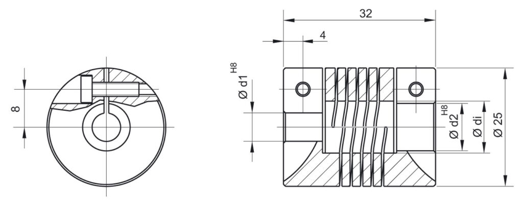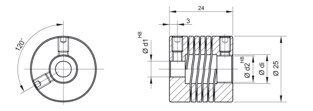 Giunti realizzati da un unico pezzo di materiale in acciaio inox AISI 303. Idoneo per un’infinita gamma di applicazioni. Assenza di gioco, assenza di vibrazioni e manutenzioni. Ottima capacità di correggere errori di disallineamento ed elevata rigidità torsionale. Possono lavorare a temperature comprese tra -40°C e 180°C.